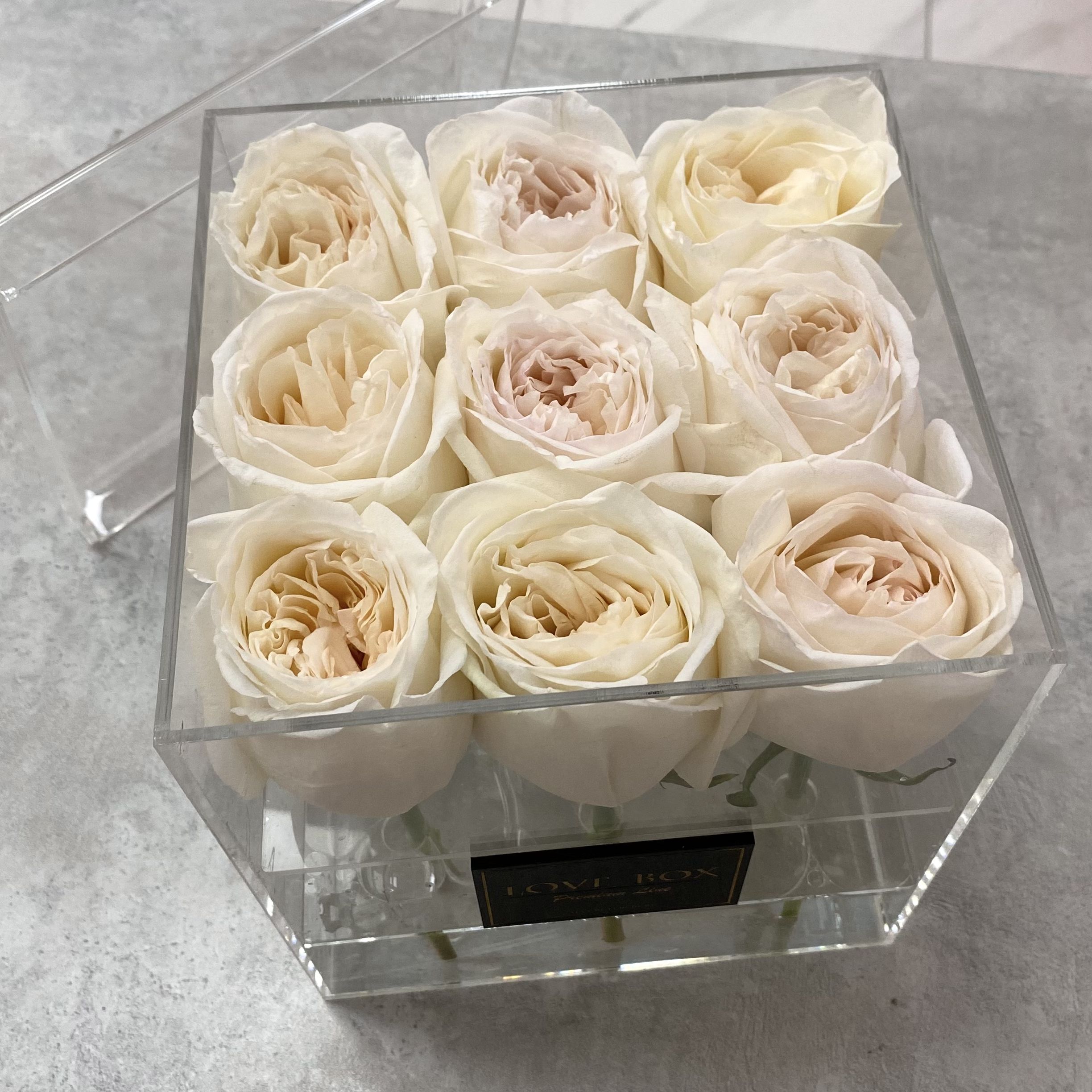 Стеклянный куб с розами White Ohara STANDARD