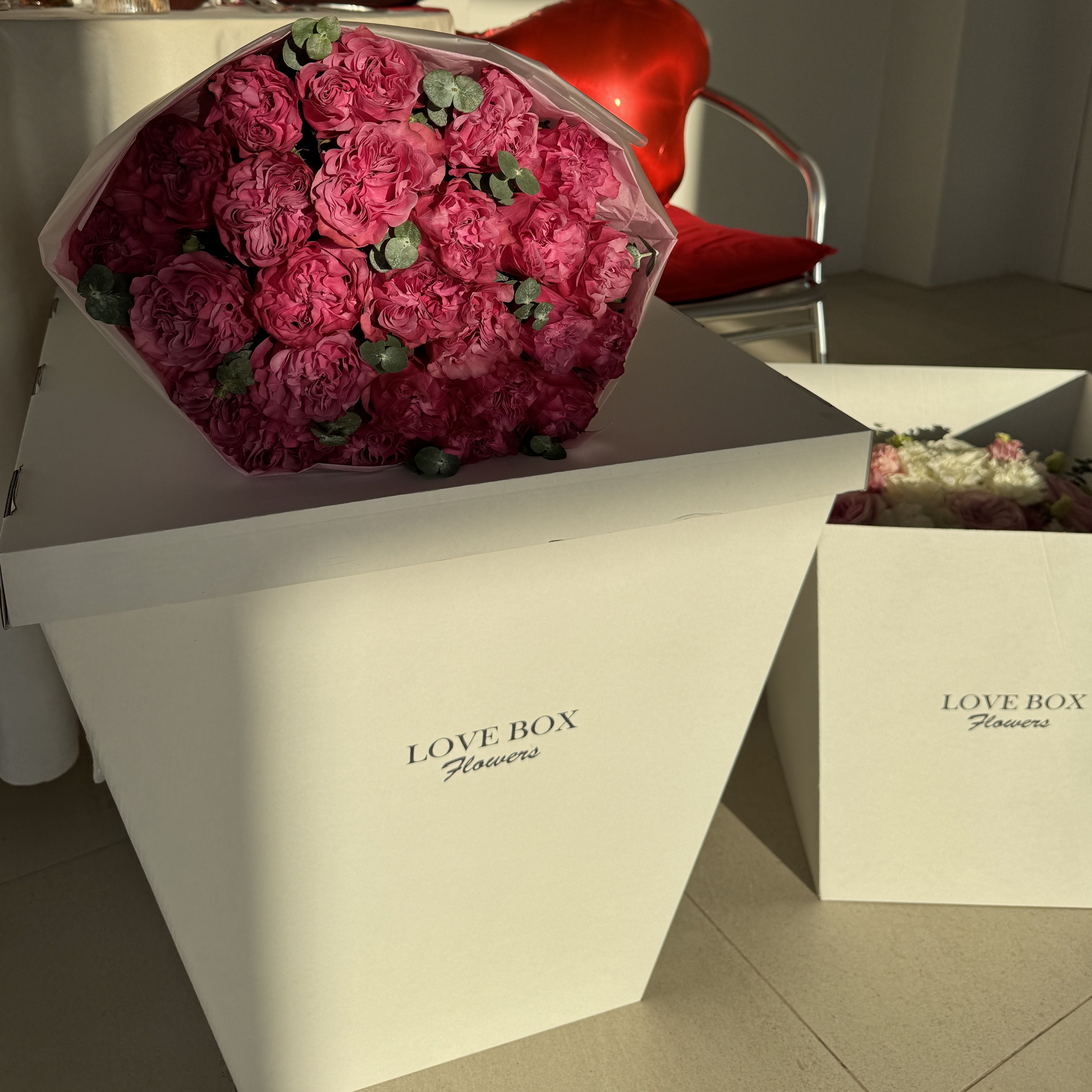 Размер бокса подбирается под букет