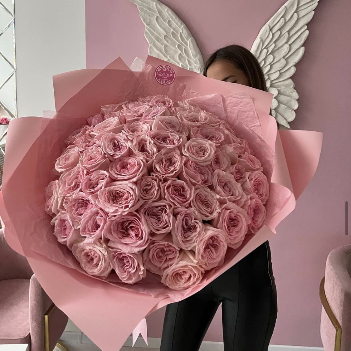 БУКЕТ ИЗ 65 НЕЖНО РОЗОВЫХ ПИОНОВИДНЫХ РОЗ